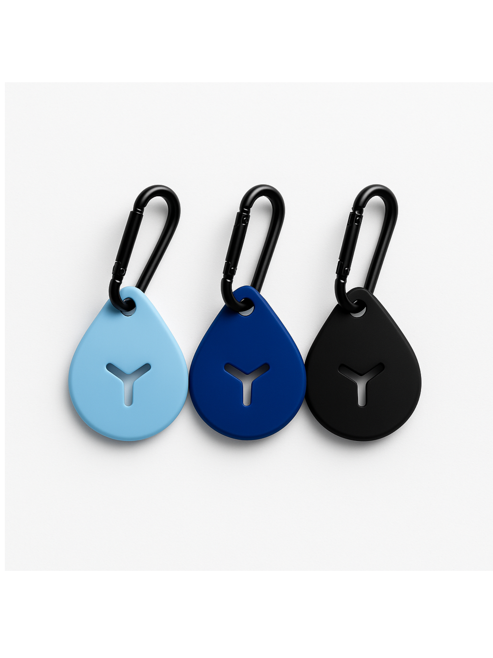A sleek, hands-free solution for carrying used waste bags. Made from smooth rubber with a matte finish and durable black carabiner. Clips easily to any leash or bag.